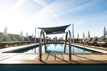 The head-turning UP & DOWN BAR on sun deck has been magnificently designed to disappear into deck when we sail under a low bridge.