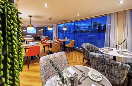 Dining is a truly un-regimented affair – unlike other river vessels, the dining room opens its welcoming arms when you are ready, rather than at a specified time. A lavish buffet with a la minute cookery stations entices you with fresh ingredients and plenty of choice. In addition, a speciality waiter service restaurant offers an alternative option, with a new menu every night and the opportunity to dine here up to three times during the week. Weather permitting, you can choose to dine al fresco around pool as you watch the beautiful scenery pass by.