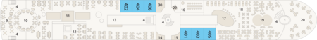 The A-ROSA SENA, ALVA, ALEA and CLEA have lifts between the decks. These do not go up to the sun deck. See also LIFT.