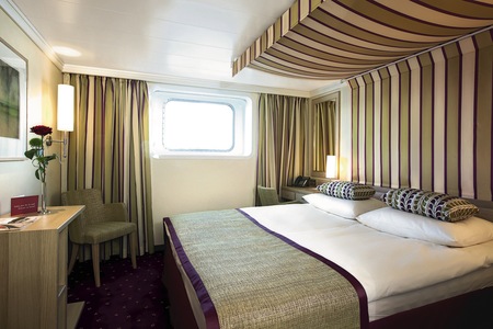 Spacious and comfortable outside cabin. Elegant design and first-class materials ensure an atmosphere of well-being. Cabin facilities: safe, air-conditioning, TV, hair dryer, bathroom with shower and toilet, sauna towel, wool blanket, telephone, bathrobe.