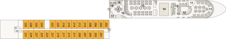 The A-ROSA SENA, ALVA, ALEA and CLEA have lifts between the decks. These do not go up to the sun deck. See also LIFT.