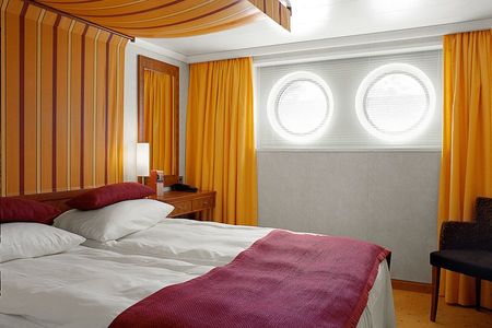Spacious, comfortable outside cabin. Elegant design and first-class materials ensure an atmosphere of well-being. Cabin facilities: safe, air-conditioning, TV, hair dryer, bathroom with shower and toilet, sauna towel, wool blanket, telephone, bathrobe.