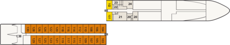 The A-ROSA SENA, ALVA, ALEA and CLEA have lifts between the decks. These do not go up to the sun deck. See also LIFT.