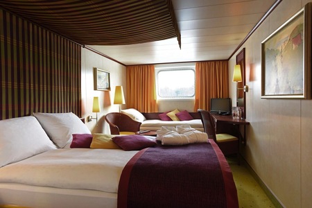 Spacious, comfortable outside cabin. Elegant design and first-class materials ensure an atmosphere of well-being. Cabin facilities: safe, air-conditioning, TV, hair dryer, bathroom with shower and toilet, sauna towel, wool blanket, telephone, bathrobe.