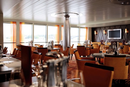 The Market Restaurant is the ship’s Dining Room (no table reservations needed). It has an open kitchen and Buffet station. The A-ROSA VIVA’s dining room menu features low-calorie, itinerary-based (regional) specialties and traditional Mediterranean dishes. Food on board is prepared with fresh locally sourced ingredients and products.