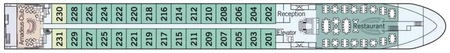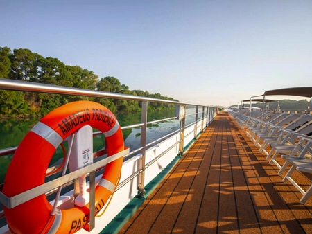 The ship’s exclusive “River Terrace” open-air lounge is in the bow and its specially designed glazing provides an incomparable view of the passing riverside scenery while simultaneously providing protection against wind and rain.