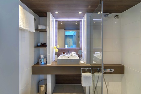 Spacious bathroom, drop-down panoramic window, mini-bar, walk-in wardrobe, choice of bed configuration (double or twin bed), flat-screen television, individual climate control, en-suite bathroom with shower/WC, hair dryer, direct dial telephone and in-room safe.