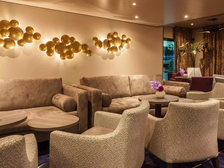 Located at the aft on the Mozart Deck. The Amadeus Club is a comfortable space with plenty of chairs and tables and unimpeded views of the outside. The decor is nautical, with models of sailing ships∘ and a replica bell. Self-service tea and coffee area is available, where passengers can help themselves to cappuccinos or espressos and choose from 16 varieties of tea.