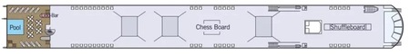 When weather is pleasant, the Sun Deck functions as the hub of activity for Silver. The top deck has plenty of lounge chairs from which to watch the passing scenery. It also has an oversized chessboard, shuffleboard and golf green for putting practice.