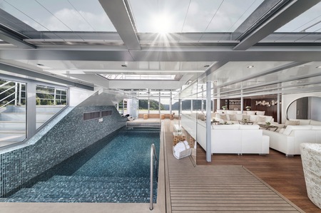 The new on-board highlight is the indoor pool, the roof of which can be opened in fine weather. In the evenings, this area may also be used for informative talks, functions and cinema showings.