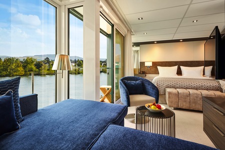 These staterooms feature the AMADEUS Signature Bed (available as a double or twin), a drop-down panoramic window for uninterrupted river views, a spacious bathroom with a walk-in shower and premium Rituals® bathing products, walk-in wardrobe, flat-screen TV, individual climate control, well-stocked minibar, in-room safe, bathrobe and slippers, hair dryer, and direct dial telephone — ensuring a comfortable and refined travel experience.