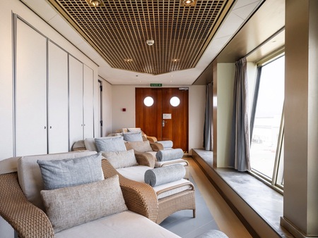 Other facilities include the wellness centre, gym, a swimming pool with retractable roof and a range of retail shops, perfect for days at sea.