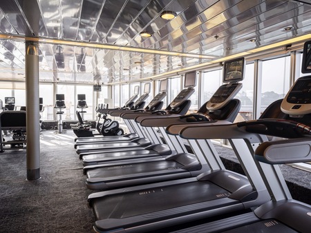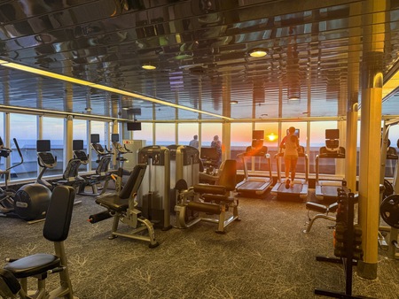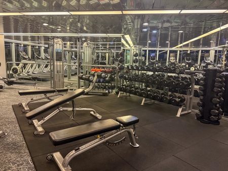 A bright, well-equipped gym for cardio and resistance training, perfect for a steady routine or a quick session before breakfast.