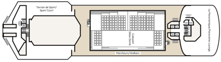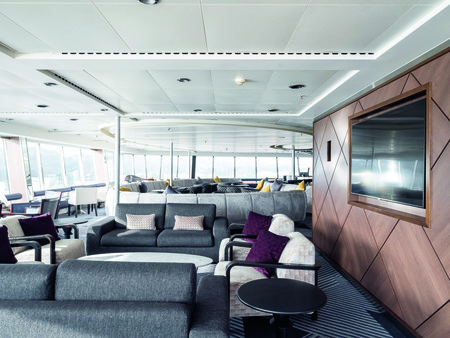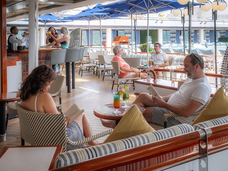 Located at the front of the ship on the highest deck, Le Panoramique offers stunning 180° view across the bow of the ship. The ideal place to while away the hours on a sea day enjoying the scenery from one of the best seats in the house. Come the evening, the atmosphere changes and you can dance until late with our live band and DJ.