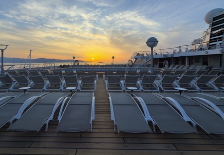The Promenade Terrace cabins. Featuring all the amenities of standard cabins, with a sliding glass door opening directly onto the promenade decks. In addition, deck chairs are reserved on the promenade deck for your exclusive use.