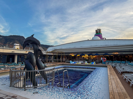 Located mid-ship of deck 11, the Lido pool, bar and grill are the perfect casual venues to enjoy the day. And, with the retractable roof you can relax knowing you are covered, or not, whatever the weather. With two whirlpools, a main swimming pool and plentiful sun loungers this is the perfect area for a sea day.