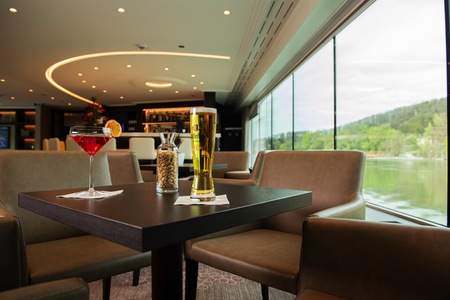 A spacious, open-seating dining room with elegant dining service and large panoramic windows is situated on the Sapphire∘ deck. With an elegantly simple design, you can enjoy a full buffet breakfast or lunch with special options for those who wish to eat lightly, and delicious four-course dinners in the evening.