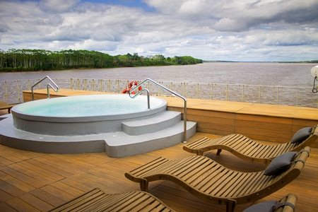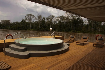 The Delfin III, the first Relais & Chateaux cruise in the world, is one of the newest luxury vessels cruising Peru's Amazon. On board this 22 all-suite ship, the rainforest is never far away, yet 5-star comforts and conveniences abound on board. Explore one of the wildest and bio-diverse places on earth while enjoying luxury aboard this intimate yet spacious vessel. Spend time relaxing on the open-air sun deck, take a dip in the refreshing plunge pool, or take a cooking class in the indoor lounge.