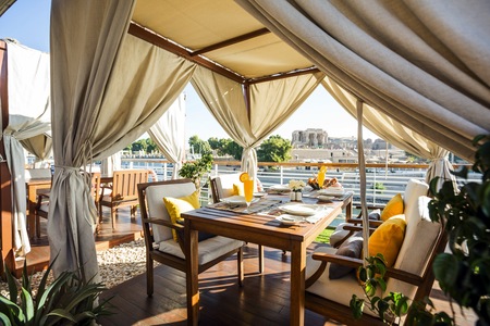 In Arabic, Farah means happiness and joy. In this spirit, you'll sail on the MS Farah-one of Egypt's most elite ships on the Nile. Cruise in style and comfort, while enjoying the mysterious and magnificent sights and experiences only found in the Egyptian landscapes. The MS Farah ship offers 56 deluxe cabins and 2 Royal Suites that feature style and comfort with oversized French balconies that are virtually wall-sized. Avalon insists on the best view and the best crew to treat you like royalty while exploring the treasures of the pharaohs on this Nile River cruise! Exploring the Nile River aboard the MS Farah is an elegant, first-class experience with a touch of mystery combined with an old world spirit of adventure, and state-of-the-art comfort, of course! Avalon's Nile River cruise aboard the MS Farah carries you into the exotic world of pharaohs, explorers, and legends, while introducing you to locals who share the traditions of generations. Relax with onboard features, including Deluxe and Royal Suite, spa services, Wi-Fi, gourmet dining, and a caring crew who create an exceptional experience in comfort, customer service, and classic adventure on board one of the Nile's most elite river ships.
