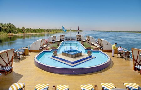 Surrounded by breathtaking views of the Nile, the Sun Deck serves refreshing cocktails & beverages
