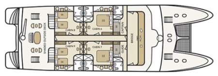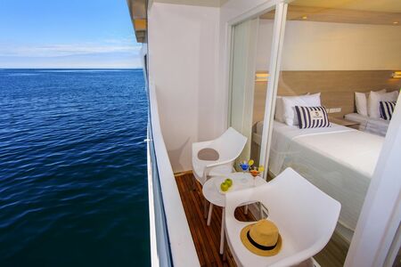 The Treasure of Galapagos has 8 spacious suites with balconies for a maximum of 16 guests. All suites are air-conditioned, and have private bathrooms, living space and balconies.