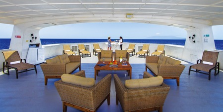 Treasure of Galapagos cruises feature a buffet breakfast, lunch and dinner onboard, with menus that feature the very best international cuisine and celebrated Ecuadorian dishes. Guests will receive wine with dinner as well as 24-hour complimentary water, tea and coffee.