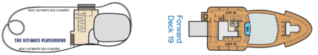 Forward-View Extended Balcony staterooms feature a larger than standard balcony that faces forward, so you’re getting a view of what’s up ahead of the ship, sort of like the captain’s view! (Note that rooms of this type have partially obstructed views.)