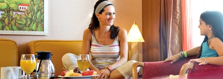 So you're in the mood for some good eats, but you’d rather stay in your comfy, cozy stateroom? Really, who could blame you? Simply pick up the phone and order something tasty from our extensive room service menus. And since you get hungry when you get hungry, room service is available any time of the day (or night), and it’s always delivered right to your door.
