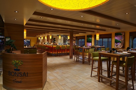 So maybe you’ve had sushi on a cruise before, but you’ve never had it like Bonsai Sushi™, our onboard seafood-and-soy-sauce spot. Dine amidst expertly-pruned bonsai trees while enjoying sit-down service and an affordable menu of delectable sushi and sashimi… plus rolls, soups, sides, sakes and desserts. So the next time you’re taking an onboard stroll, stop at Bonsai Sushi for a little something satisfying.
