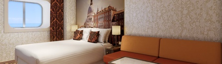 A cozy, classic stateroom decked out with Italian flair… plus amenities like exclusive access to the outdoor Terrazza Carnevale area. (All Terrazza stateroom guests must be 12 or older.)