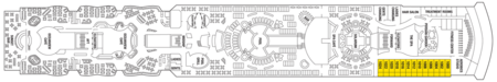 Smoking is not permitted inside any stateroom or on any stateroom balcony. This applies to all stateroom categories onboard. Smoking is also not permitted in any dining venue, theatre, bar, lounge, hallway, or elevator; on the jogging track; or in most other indoor areas. Furthermore, smoking is not allowed in certain outdoor spaces, including restricted areas, food venues, and kids play areas and pools. If a guest is in violation of this “No Smoking” policy, a cleaning fee will be applied to their onboard account.