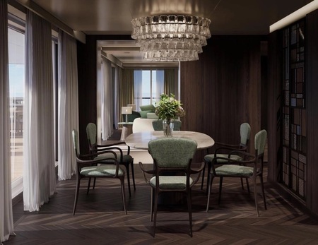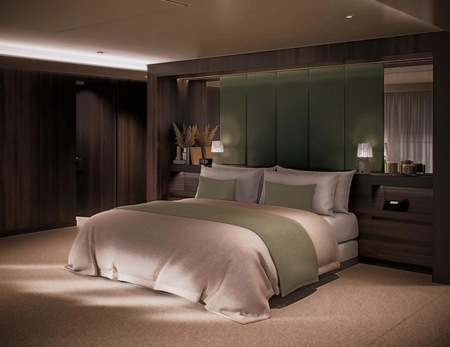 This one-of-a-kind suite is a first for Crystal – an expansive, residence-style sanctuary occupying a premium position at the aft of the ship, offering 270-degree views. Every detail has been carefully crafted to create a space that feels indulgent, refined, and supremely comfortable. The finest craftsmanship and premium materials, including custom wool carpets, walnut floors, marble, and bespoke cabinetry, are evident throughout, while the latest technology has been cleverly integrated to provide a superior experience. A state-of-the-art entertainment system plays music across multiple zones, including on the veranda for seamless indoor-outdoor living. The vast outside space features a private hot tub, outdoor shower, and dining area, while a guest bathroom and butler pantry allow you to entertain in the privacy of your suite. It’s the ultimate home at sea.