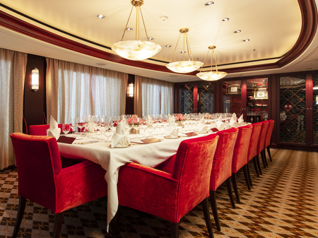The Vintage Room offers guided pairings and dinners highlighting the vast selection of wines in the ship’s onboard cellar. This intimate, innovative concept offers guests an education in fine wine and cuisine, allowing them to gain privileged insights into the art of enology. In addition to daytime tastings and discussions, guests may enjoy a variety of private wine-themed lunches and dinners by special arrangement with the Head Sommelier.