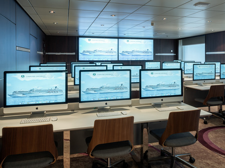 The ship's sleek cinema for recent-released movies, live sport events, guest lectures and religious services.