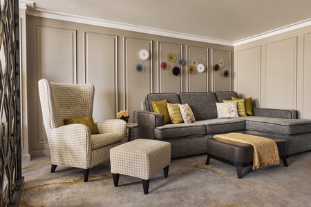 Redesigned in 2023, this stylish guest room features a comfortable living area with sofa, large picture window, walk-in shower, and a sleek built-in wardrobe.