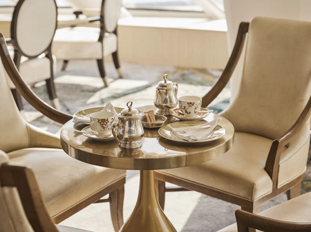 Redesigned in 2023, this luxurious suite features a walk-in wardrobe, separate living room and dining area, Jacuzzi bathtub, separate shower, bidet, and guest bathroom. Guests staying in this stylish home away from home enjoy unlimited dining at specialty restaurants, unlimited laundry services, afternoon canapés, flowers, binoculars, and a coffee maker.