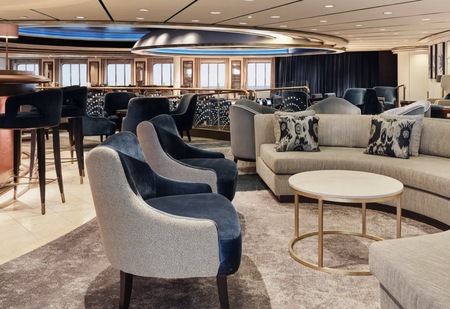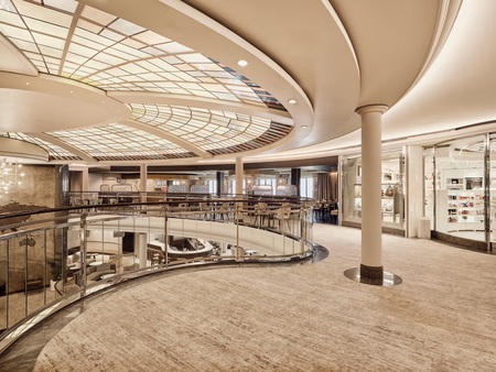 The central meeting place on the ship where you can visit the front desk, concierge, shore excursion desk, or sip on a casual drink at the Crystal Cove.