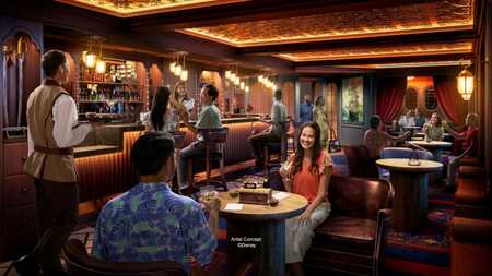 Immerse yourself in the enchanting underwater tales at this expansive open-air retreat at the back of the ship. Savor tasty offerings at Cosmic Kebabs. Sip on a wickedly delicious bubble tea at Bewitching Boba and Brews. And explore the breezy sports bar, Taverna Portorosso, and the walkup coffee bar, Palo Café, both inspired by the picturesque coastal Italian village featured in the movie. This breezeway is also home to upscale dining at Palo Trattoria and Flavors of Asia. All of this and more is set amid dazzling coral reefs and soft sunlight filtering through glass canopies. By night, witness the area transform into a wondrous bioluminescent paradise.