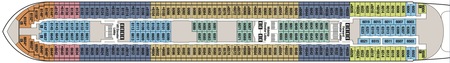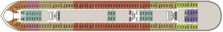 Rooms on Decks 1 and 2 offer Guests convenient proximity to shipboard restaurants and nightclubs while Decks 5, 6 and 7 are upper decks with more commanding views.