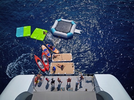 In the aft of your yacht, you’ll find the Marina Platform and watersports toys which will be made available on selected days.
