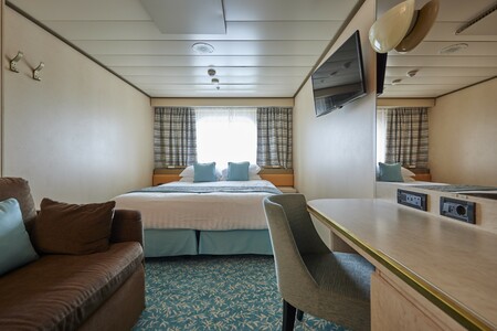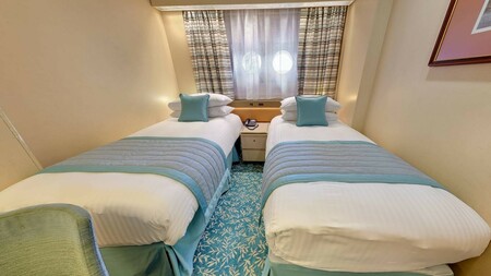 Situated forward and aft on Coral Deck 2 and Marina Deck 1, Bolette's F Grade Ocean View cabins feature porthole windows that not only bathe the interior in natural light, but also provides guests with fantastic ocean views.