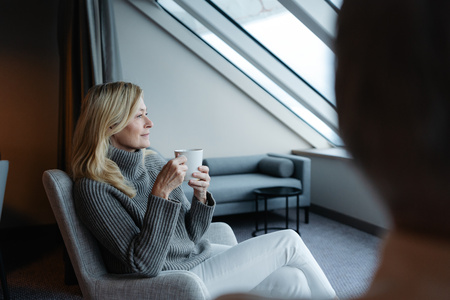 Corner cabin with large windows. Flexible sleeping arrangements, TV, minibar, bathrobe, kettle, tea and coffee, espresso maker. Without balcony.