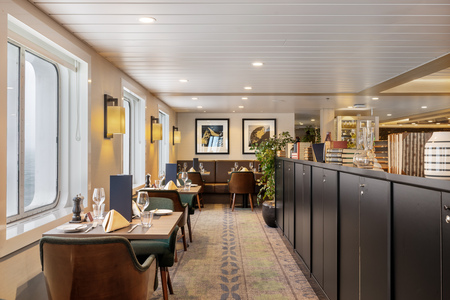 MS Spitsbergen’s main restaurant serves three meals a day from generous breakfast buffets, casual lunches, to beautifully plated dinners that spotlight regional dishes.
