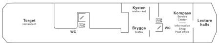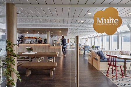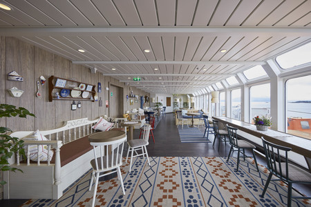 The name of our onboard bistro can be translated from the Norwegian as ‘wharf’. As you’ll probably see during your voyage with us, wharves on the Norwegian coast are typically busy places bustling with workers loading and unloading cargo, without much time for a relaxing sit-down meal.
