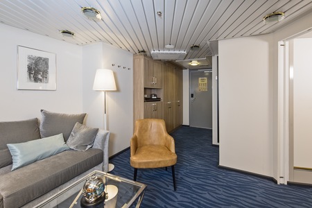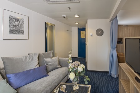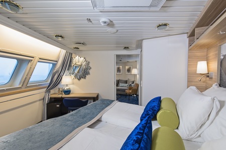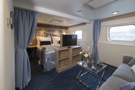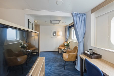 These elegant, refurbished suites are situated on the upper deck. They feature a separate bedroom, double bed, sofa in the sitting area that can be made into a double bed, free Wi-Fi, TV, hair dryer, bathrobes, blanket, and coffee and tea facilities.