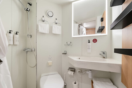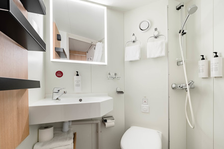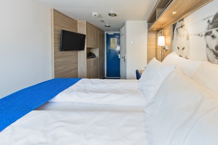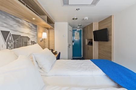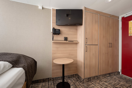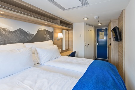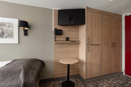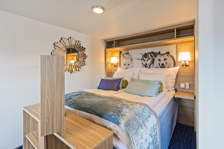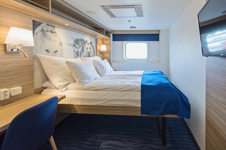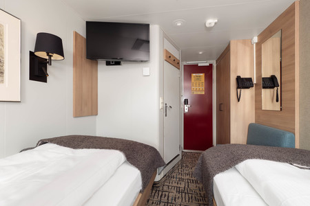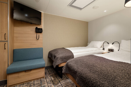 Wheelchair accessible rooms for up to two people with wider door, accessible WC and adjusted bed, as well as one chair, a table, desk and hairdryer. (We have a limited number of wheelchair accessible cabins, so we ask that they are booked by guests who require these cabins. Please inform us in advance of your disability - you will find Hurtigruten contact information on the Booking Confirmation document.)