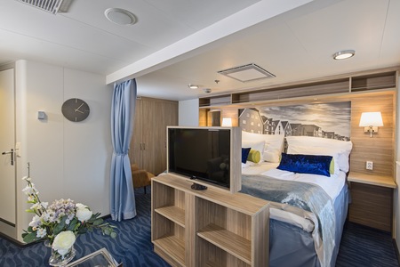 Relaxation and comfort are the hallmarks of our Arctic superior cabins. Situated on both the upper and middle decks, these suites have double beds, a TV, bathrooms with shower and WC, and tea and coffee-making facilities. All cabins have individual specifications.