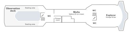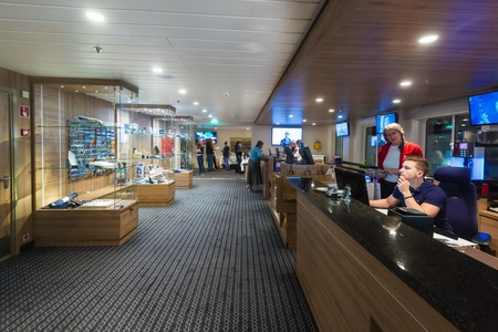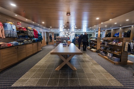 The ship additionally has a large compass area with reception, a tour guide, conference room, and shop.