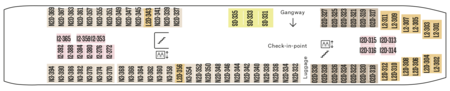 We ask guests embarking at ports where we dock for 15 minutes or less to drive onto the ship before checking in. A member of our car deck crew will hand you a transit card. Please show this card to reception staff during check-in. Check our sailing plan to see how long we stay in each port.