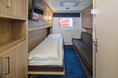 Our cosy Polar Inside cabins can be found on all decks. All cabins include bathrooms with shower/WC. Most of the cabins have separate beds where one doubles as a sofa, while some are equipped with upper and lower berths. All the cabins have individual specifications.